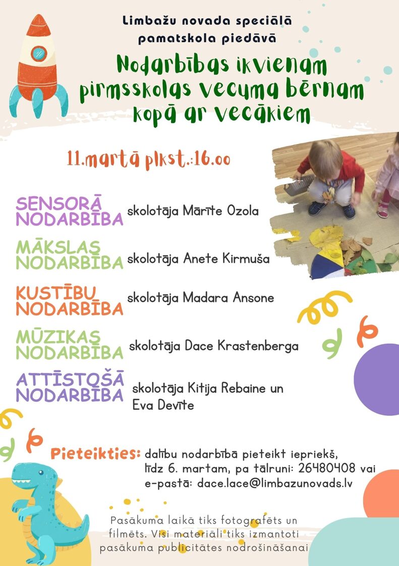 Pavasara brīvlaiks bija patīkamu atkal tikšanos pilns! Mazie un lielie ciemiņi ar neviltotu prieku piedalījās, nu jau par tradīciju kļuvušajā, pirmsskolas bērnu nodarbībās, kuras vadīja mūsu skolas speciālisti: Mārīte Ozola - sensorā nodarbība, Kitija Rebaine un Eva Devīte - rotaļnodarbība, Anete Kirmuša - mākslas nodarbība, Madara Ansone - sporta aktivitātes. Prieks, ka mūsu uzticīgajam draugu pulciņam pievienojās arī jauni pasākuma apmeklētāji. Paldies bērnu vecākiem par labajām atsauksmēm un konstruktīvajiem priekšlikumiem nākamajiem pasākumiem. Novērtējam jūsu uzticību un atsaucību! Uz tikšanos nākošajās reizēs!
